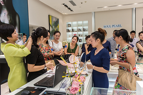 本报讯 9月20日下午,深圳金丽国际珍珠交易中心(以下简称金丽珍珠城)联合深圳市创新总裁俱乐部举办了“珍珠私享下午茶”活动。红酒、鲜花,更显品位和格调,在温馨浪漫的活动现场,还特别展示了龙之珍珠、梦想成珍、真谛真珠、懿珠宝、十上珠宝等品牌的特色珍珠产品。 活动伊始,深圳市创新总裁俱乐部秘书长戴薇代表本次活动嘉宾对金丽珍珠城的热情招待表示感谢。她说,金丽中心作为总裁俱乐部的会员单位,一直积极作为。此次总裁俱乐部会员单位代表走近金丽珍珠城,了解珍珠知识和文化。希望双方能加强交流与合作,多多互动,提供更多的机会,让更多的人走进金丽珍珠城,了解珍珠。 金丽国际珍珠交易中心副总经理陈婉萍对大家的到来表示热烈欢迎。她介绍说,金丽珍珠城所在的大厦有国家珠宝玉石质量监督检测中心、中国珠宝南方产学研基地等行业资源汇聚。且金丽珍珠城作为深圳市唯一一家专业化的珍珠采购交易平台,已然成为大家了解和采购珍珠的重要窗口,欢迎大家来金丽珍珠城观赏和品鉴珍珠。 此次活动还特别邀请了真谛真珠总经理韩依霖与大家一起分享珍珠知识。韩总首先给大家介绍了珍珠的基本分类及鉴别珍珠的主要方法。同时,她还根据不同脸型,为现场的嘉宾分析珍珠首饰的搭配技巧。 在分享过程中,韩总与大家积极互动,气氛十分活跃。在了解各自的脸型及符合自己的珍珠首饰款式后,大家纷纷来到金丽珍珠城各入驻企业,品鉴和挑选自己喜欢的珍珠饰品。 (伍容) |